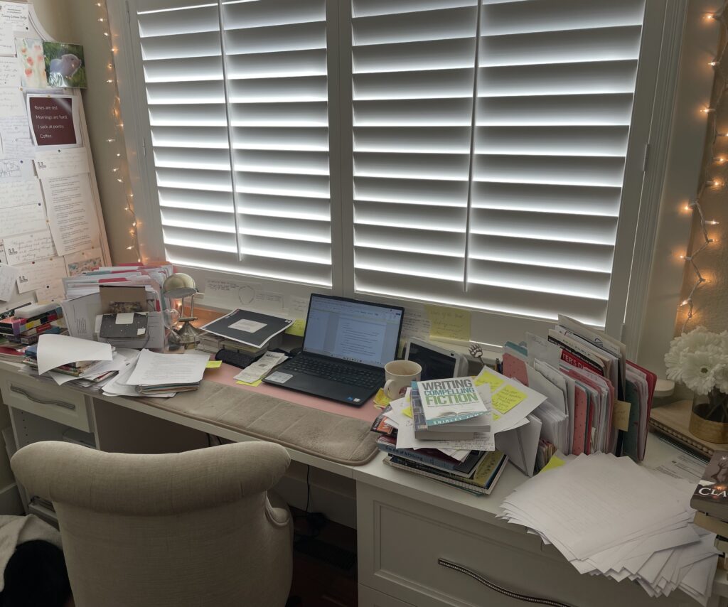 Those are details you could expect in a description of a writer’s space.
